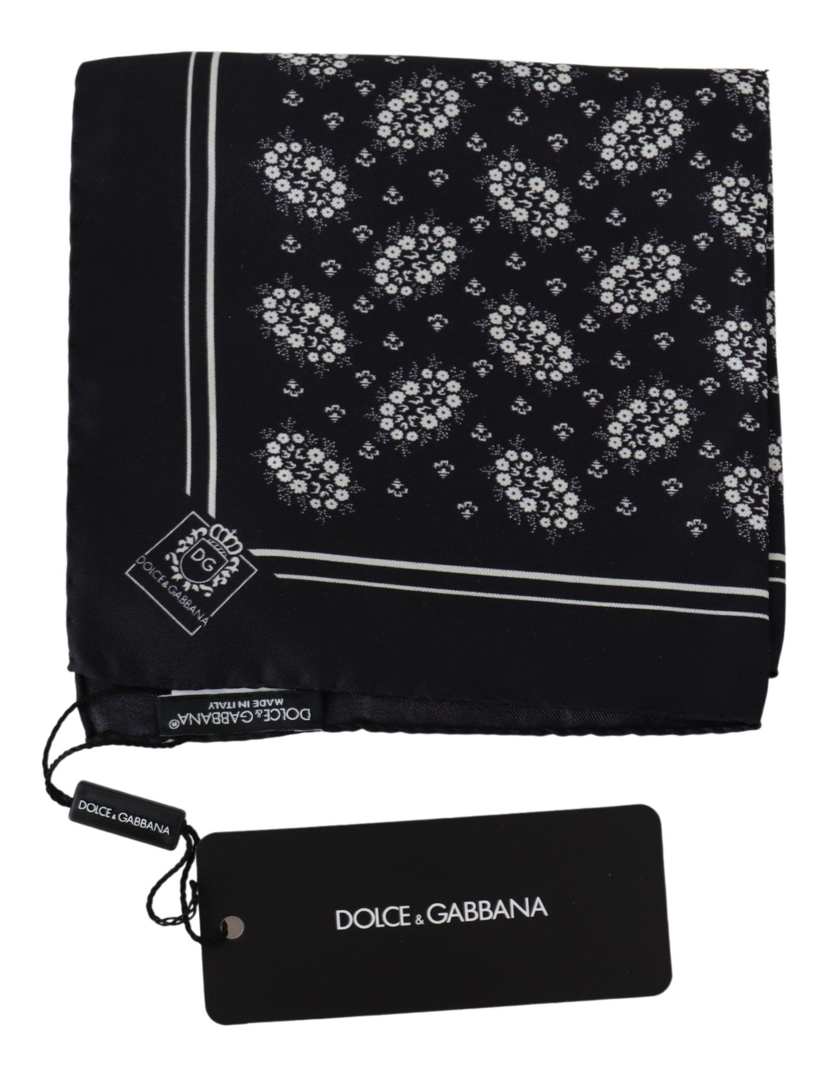 Dolce & Gabbana Schwarz gemustertes Quadratisches Halstuch Seidentaschentuch