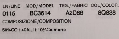 Material: 50% Baumwolle, 10% Cayman Leder, 40% Leinen