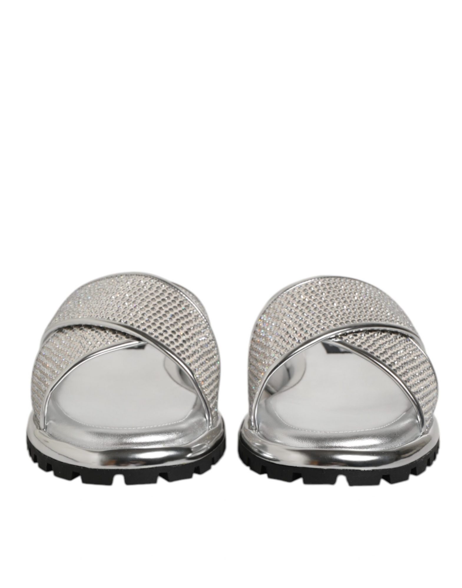 Wunderschöne, brandneue, 100% authentische Dolce & Gabbana Pantoletten, verziert mit glitzerndem Silberstrass für ein schillerndes Finish. Mit einer schlanken Slip-on-Silhouette und einer bequemen flachen Sohle verleihen sie lässigen Looks einen Hauch von Luxus – perfekt für Ausflüge bei warmem Wetter oder mühelos schicke Abend-Ensembles.